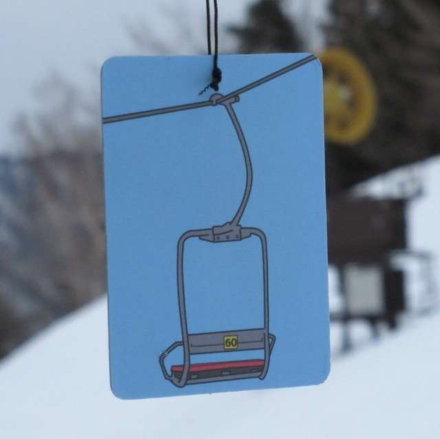ふたり乗りのチェアリフトです。いちばんオーソドックスで見慣れたリフト。それだけに毎日の中に取り入れたい!そんなウインタースポーツ好きに使ってほしくて作りました。 ゴムひもで吊るせる厚紙製のエアフレッシュナーです。 合成香料が苦手な人向けに無香料となっています。 ご自身でエッセンシャルオイルなどで香りづけしてお楽しみいただけます。 (本体に消臭効果はありません) サイズ:幅70mm×高さ95mm×厚さ約1mm