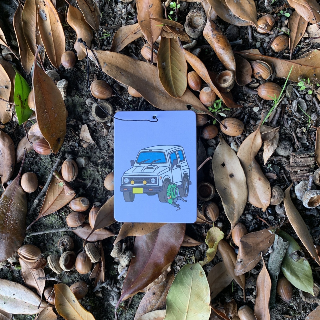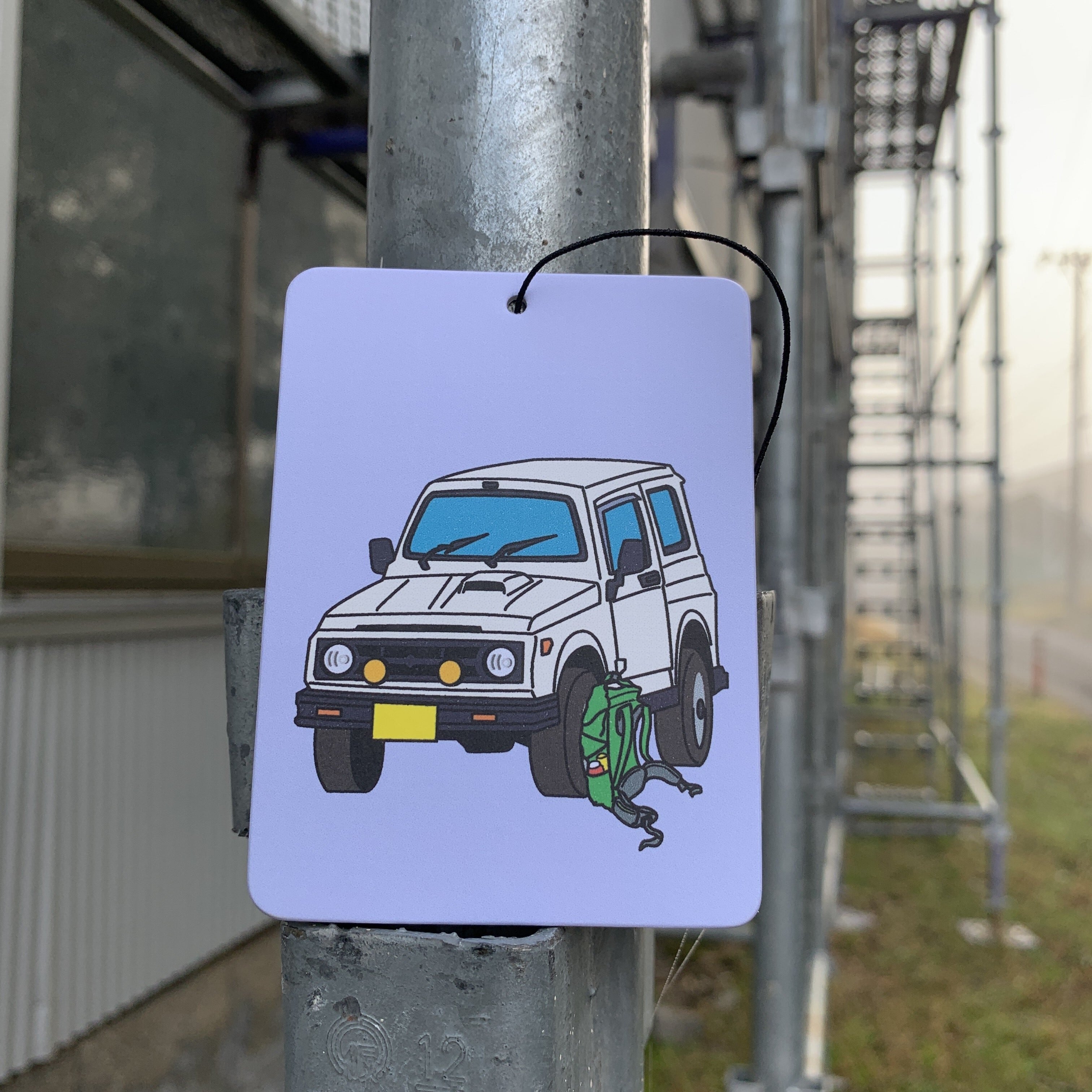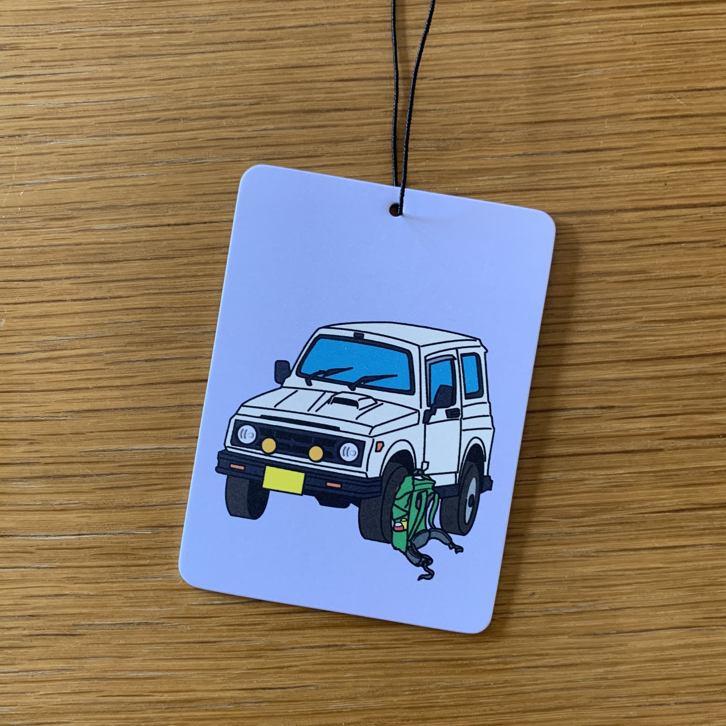 ゴムひもで吊るせる厚紙製のエアフレッシュナーです。