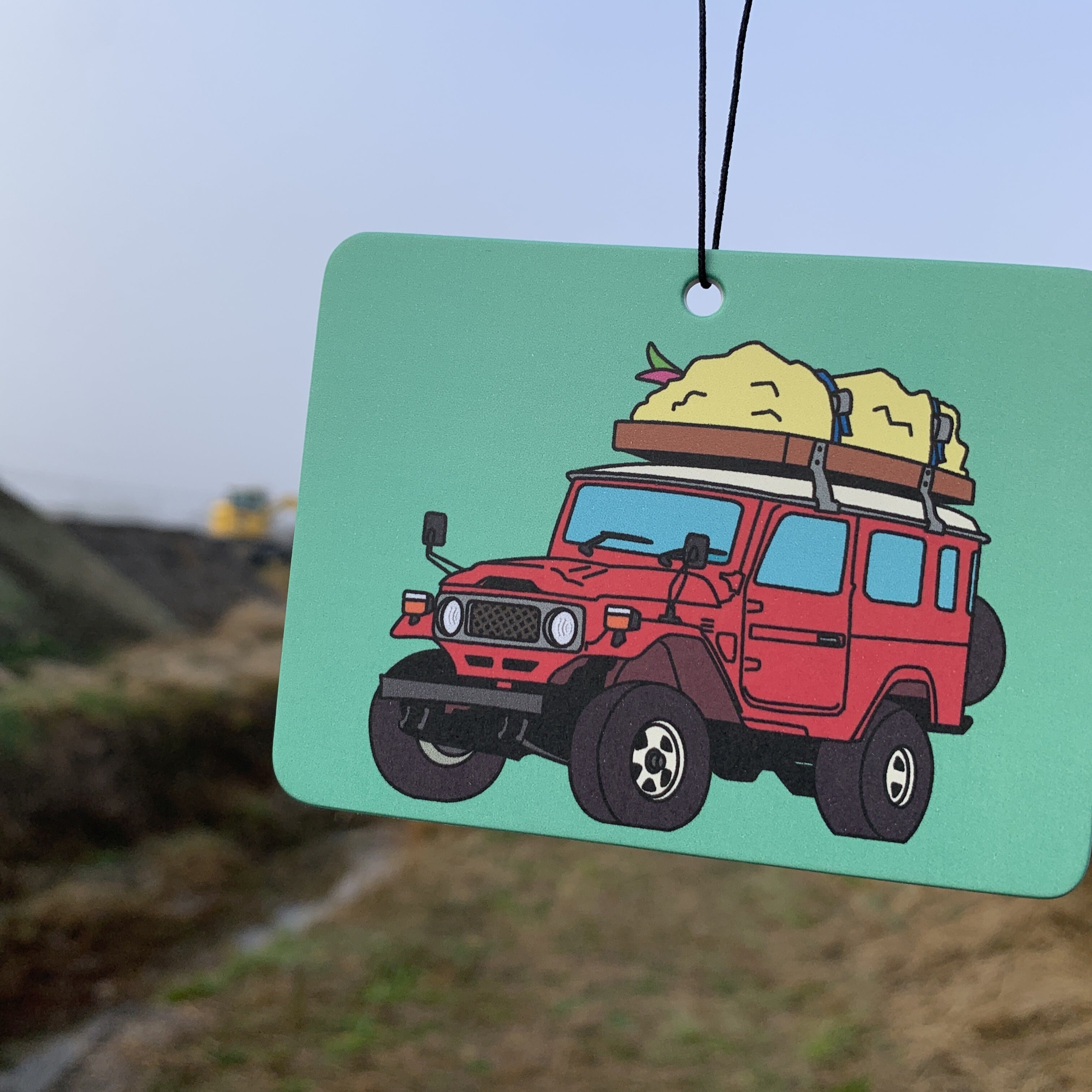 ゴムひもで吊るせる厚紙製のエアフレッシュナーです。